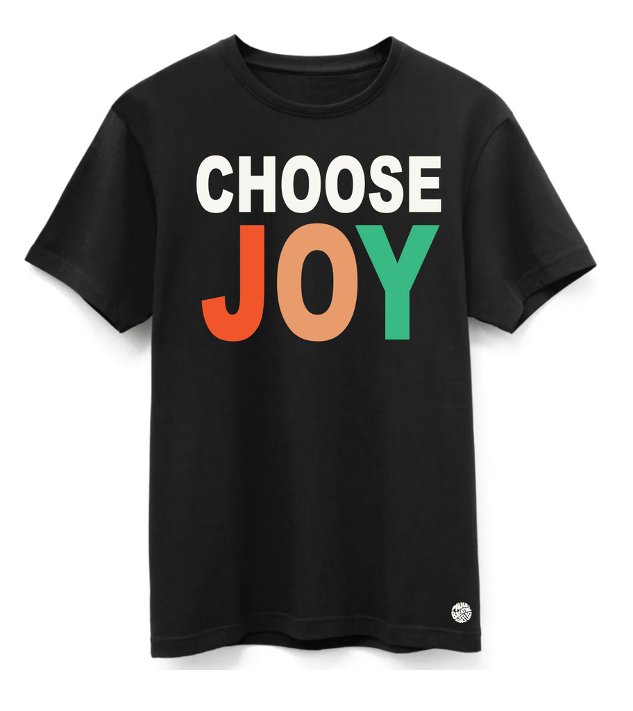 We've designed wonderful t-shirts at Pause Breathe Reflect, but the one that gets the most attention and comments is our CHOOSE JOY.